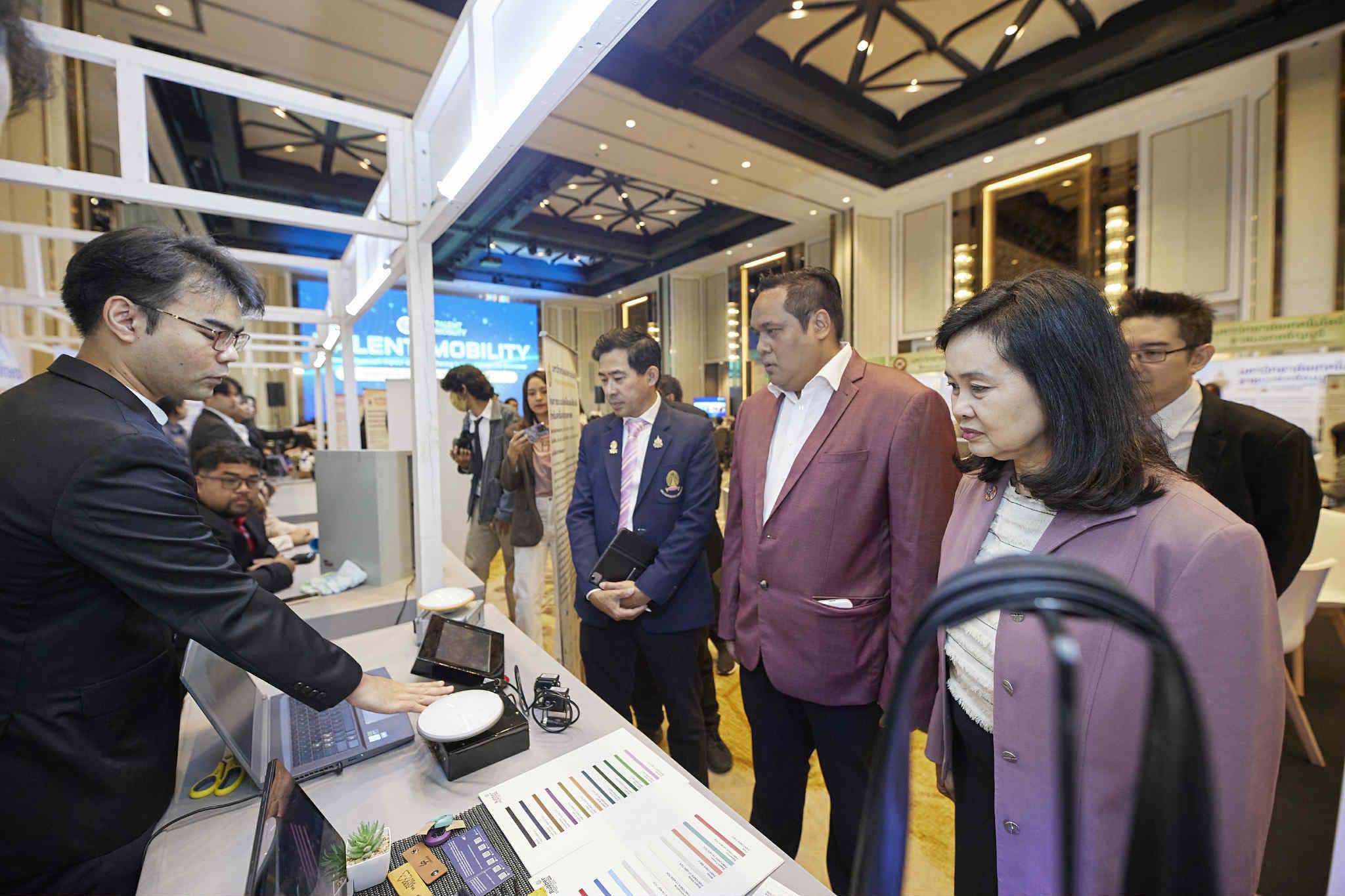 📌ภายในงานมีการจัดแสดงผลงานกว่า 40 โครงการ จากความร่วมมือของ 15 มหาวิทยาลัย พร้อมการเสวนาจากผู้แทนภาคเอกชนและศูนย์ TM Clearing House ในหัวข้อ “การขับเคลื่อนระบบวิจัยและพัฒนาเพื่อสร้างความสามารถทางการแข่งขันของสถานประกอบการผ่านกลไก Talent Mobility” และ “การขับเคลื่อนนโยบาย Talent Mobility เพื่อพัฒนาเครือข่ายความร่วมมือระหว่างสถาบันอุดมศึกษากับภาคเอกชนและการนำเสนอผลงานเด่น“ พร้อมเปิดพื้นที่ Advice Space ให้ผู้ประกอบการเข้ามารับคำปรึกษาเกี่ยวกับโจทย์วิจัยที่ต้องการการสนับสนุนเพิ่มเติมอีกด้วย