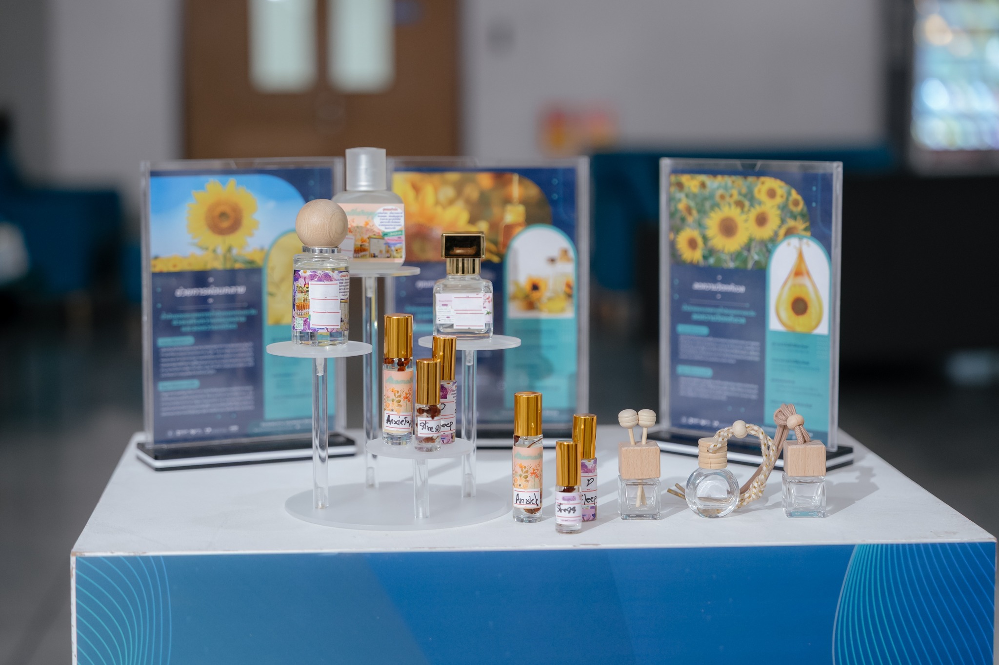 👉 ผลงานผลิตภัณฑ์น้ำมันหอมระเหยที่มีผลต่อการทำงานของสารสื่อประสาทเซโรโทนิน สารสื่อประสาทคอร์ติซอล และโดปามีน เพื่อเพิ่มสุขภาวะสมดุลกายจิต