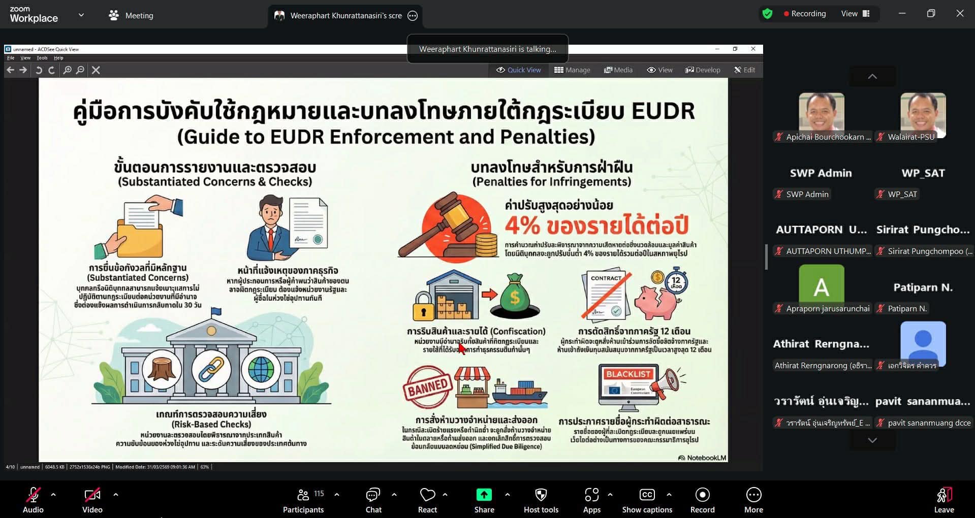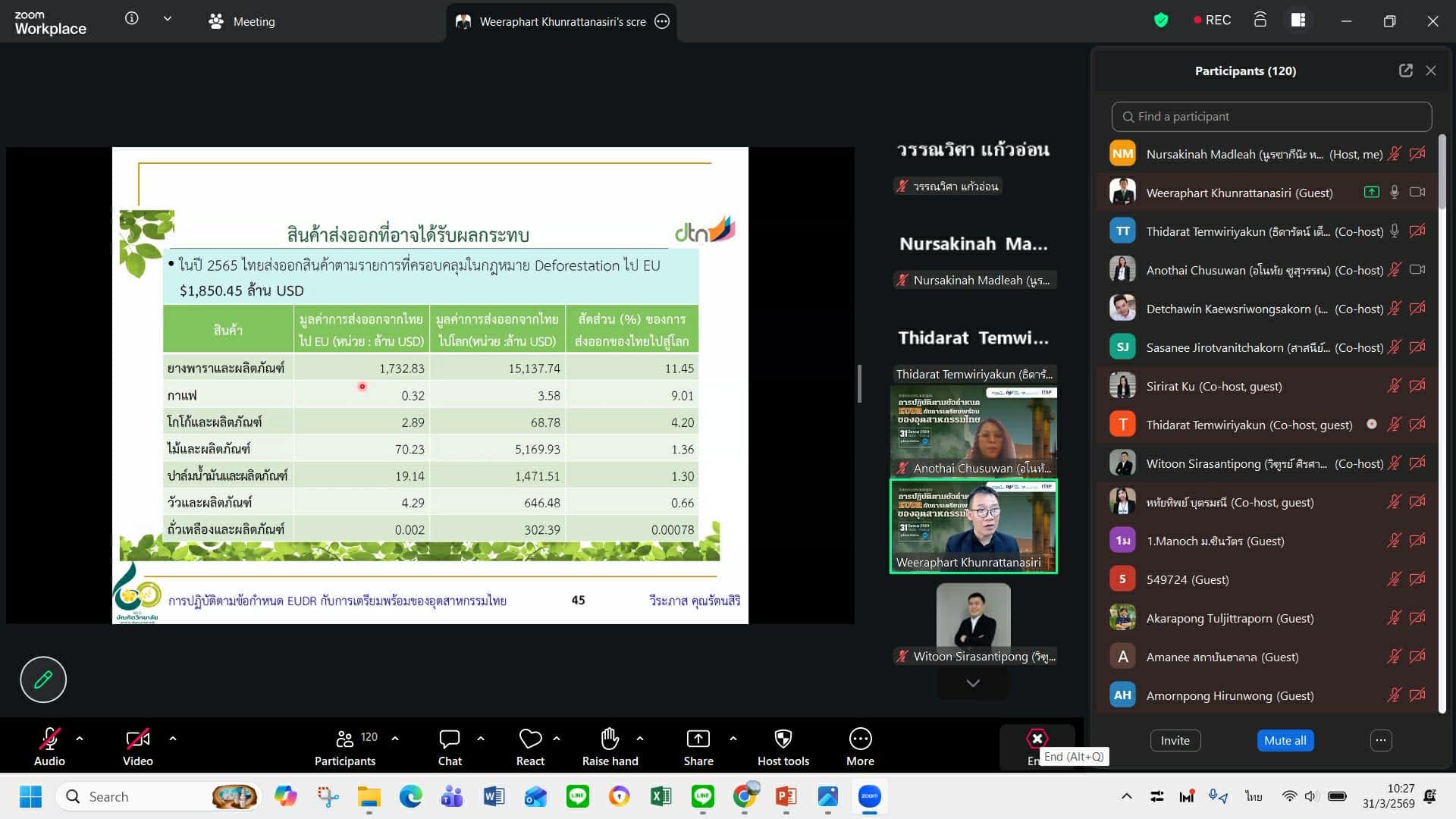 📌การอบรมมุ่งเน้นให้ผู้เข้าร่วมมีความเข้าใจเกี่ยวกับข้อกำหนด หลักการ และกลไกของ EUDR อย่างเป็นระบบ พร้อมเตรียมความพร้อมในการปฏิบัติตามข้อกำหนด ลดความเสี่ยงในการถูกปฏิเสธการนำเข้าสินค้า และเสริมศักยภาพการแข่งขันของสินค้าไทยในตลาดยุโรป ตลอดจนส่งเสริมการพัฒนาอย่างยั่งยืนและความรับผิดชอบต่อสิ่งแวดล้อมของภาคอุตสาหกรรม