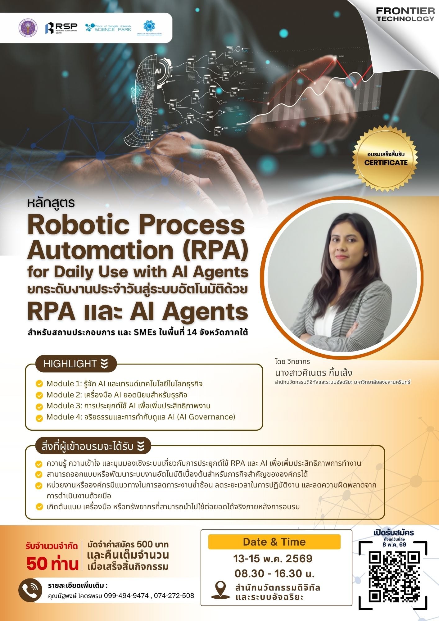 📍 ห้อง Spark อาคารอำนวยการอุทยานวิทยาศาสตร์ภาคใต้ จ.สงขลา