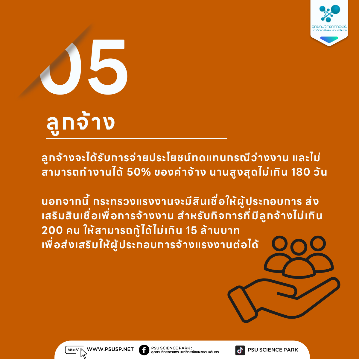 📌5) ลูกจ้าง: ลูกจ้างจะได้รับการจ่ายประโยชน์ทดแทนกรณีว่างงาน และไม่สามารถทำงานได้ 50% ของค่าจ้าง นานสูงสุดไม่เกิน 180 วัน