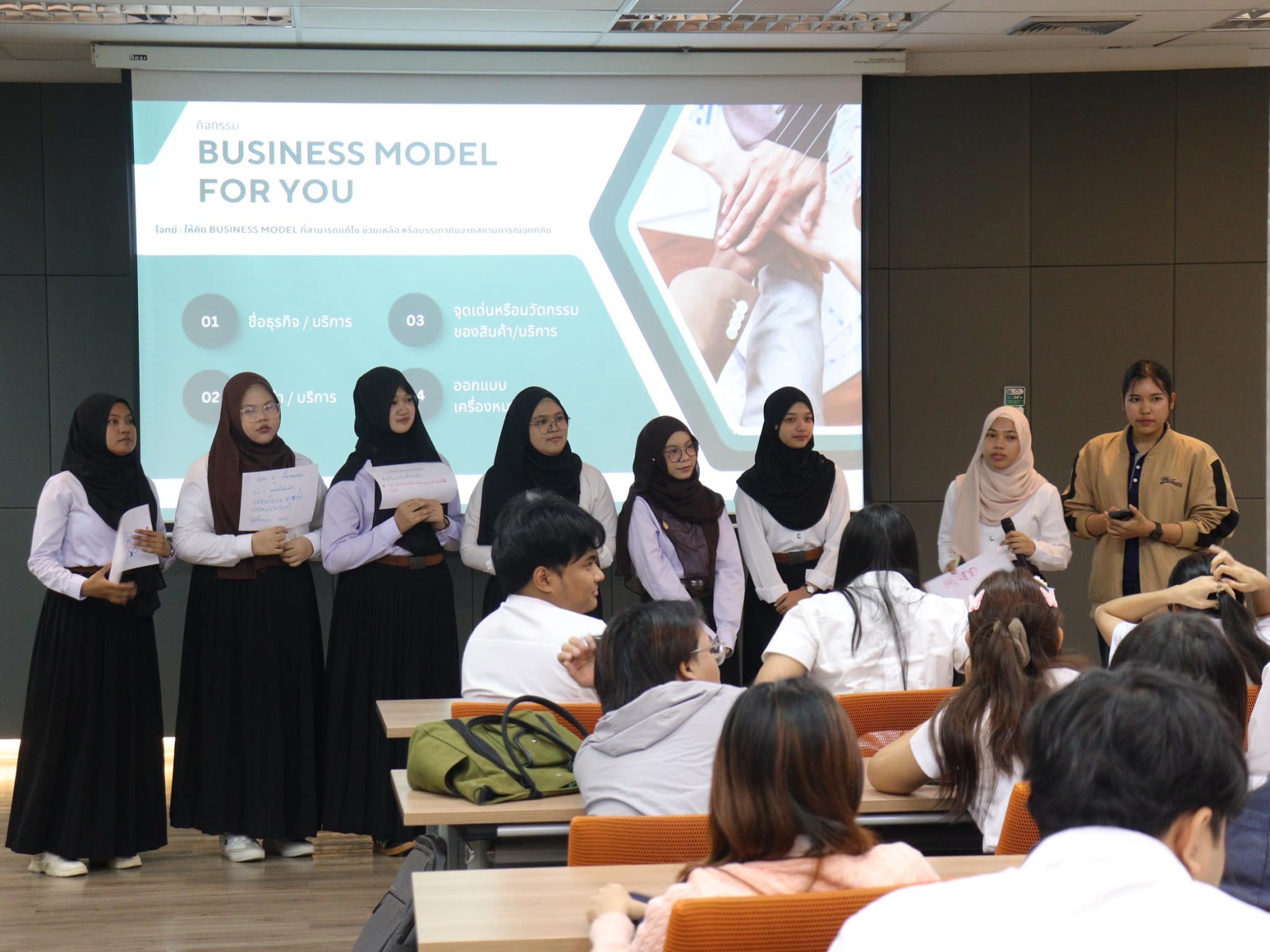 📌ช่วงต่อมาเป็นกิจกรรม Workshop การสร้างโมเดลธุรกิจ เพื่อเสริมสร้างทักษะเชิงปฏิบัติในการนำผลงานวิจัยและนวัตกรรมไปต่อยอดเชิงพาณิชย์ ก่อนปิดท้ายด้วยการเยี่ยมชมพื้นที่สำคัญภายในอุทยานวิทยาศาสตร์ อาทิ การบันทึกภาพร่วมกัน ณ ลานชั้นดาดฟ้า พื้นที่ให้บริการแก่ภาคเอกชน และ STSP INNOMART