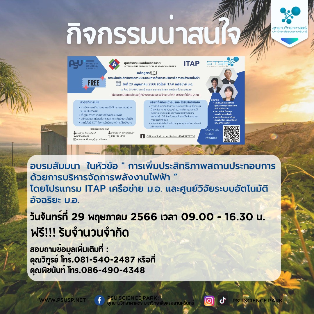 โดยโปรแกรม ITAP เครือข่าย ม.อ. และศูนย์วิจัยระบบอัตโนมัติอัจฉริยะ ม.อ.